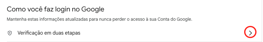Identifique a opção Verificação em duas etapas e clique.