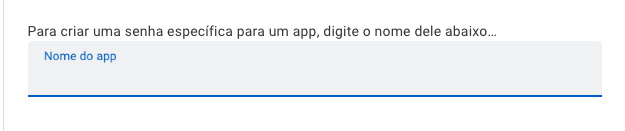 Vai aparecer uma tela solicitando o nome do app para o qual você deseja criar a senha. Dê um nome amigável que permita que você identifique facilmente o app depois.