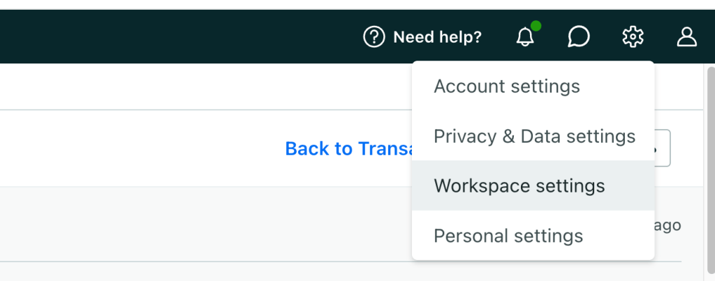 Faça login na sua conta do customer.io e acesse Workspace settings no canto direito superior.