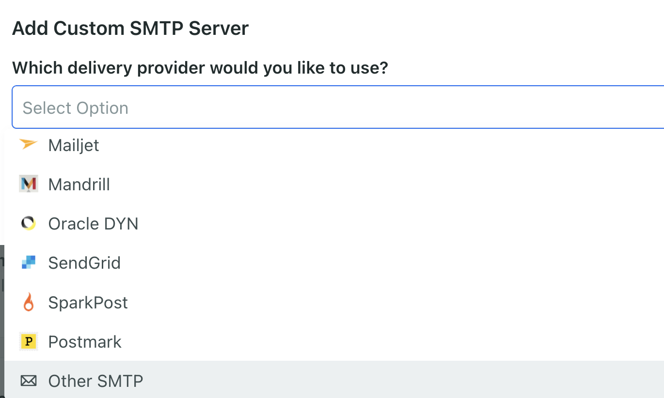 Você verá um pop-up para escolher o provedor, escolha Other SMTP.